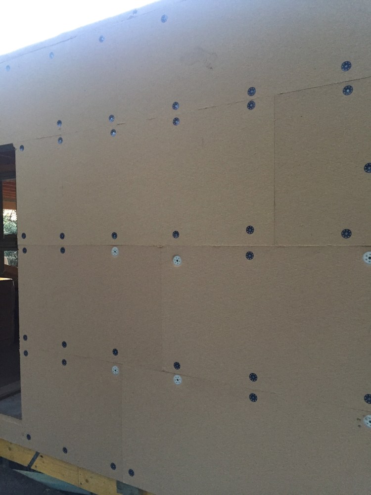 - Wrapping the house in an airtight membrane that lets moisture out, but doesn’t let air through. It’s often describes as a Gortex jacket for your house. All the edges of this membrane are then taped. If you follow any passive houses on Instagram the wrapping of the building is a key and proud moment in construction.